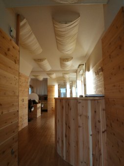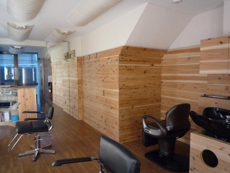 Many mirrors arranged carefully make this salon look rather spacious despite only 36u space