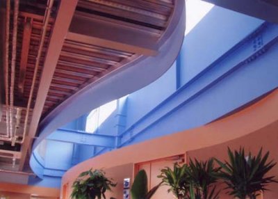 緩やかにカーブを描く外壁の開口部からは、緑が楽しめる。